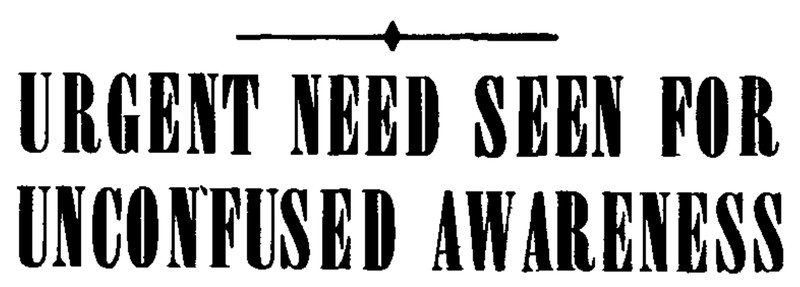 "Urgent need seen for unconfused awareness."  From The Aberree, 1961.