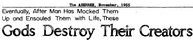 "Eventually, after man has mocked them up and ensouled them with life, these gods destroy their creators."  From The Aberree, 1955.