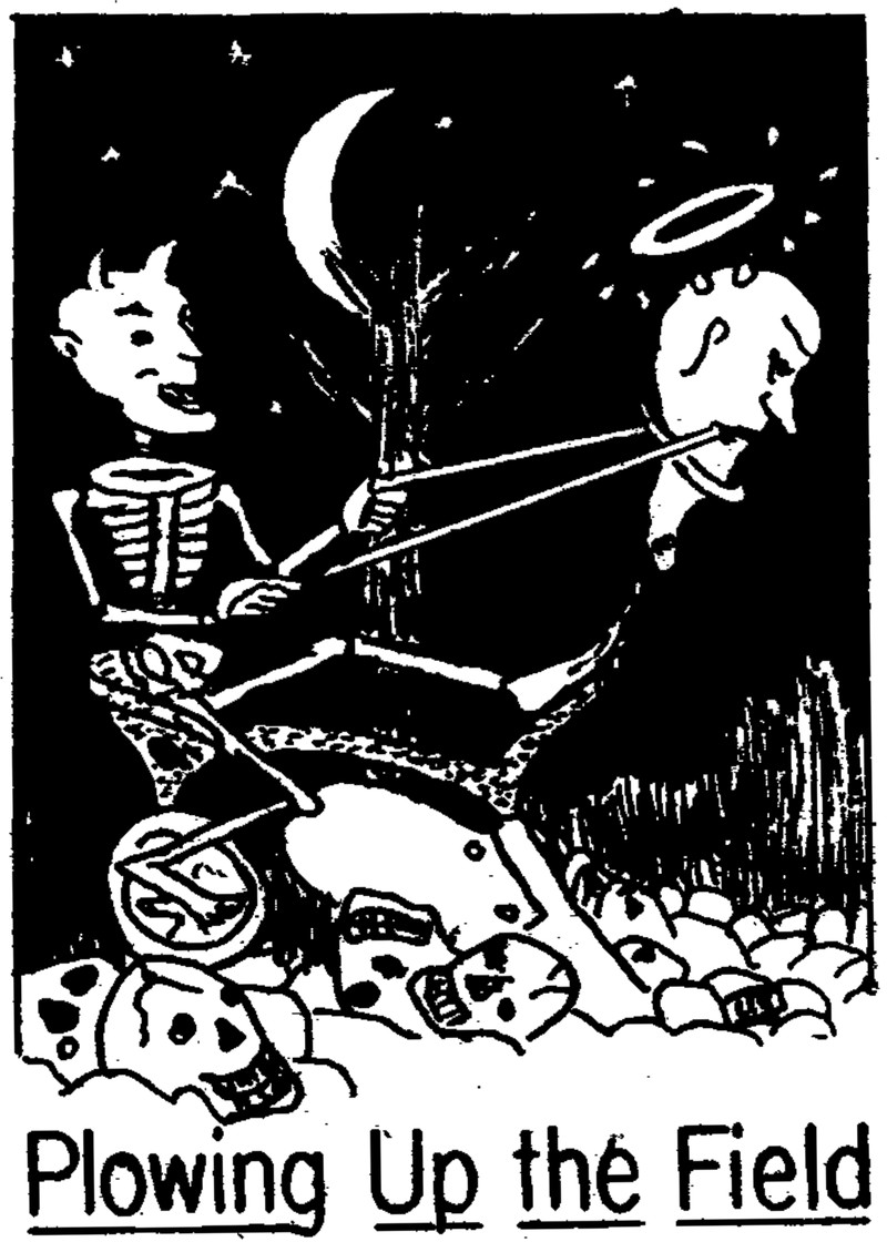 #vintage illustration #demon #macabre #skeleton #skull #grim reaper #plough