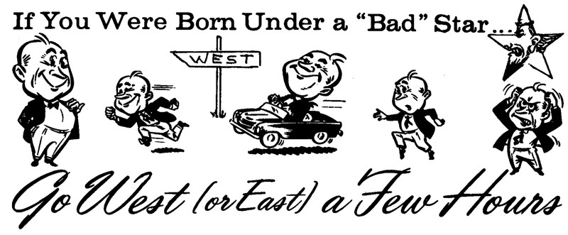"If you were born under a 'bad' star ... go west (or east) a few hours."  From The Aberree, 1964.