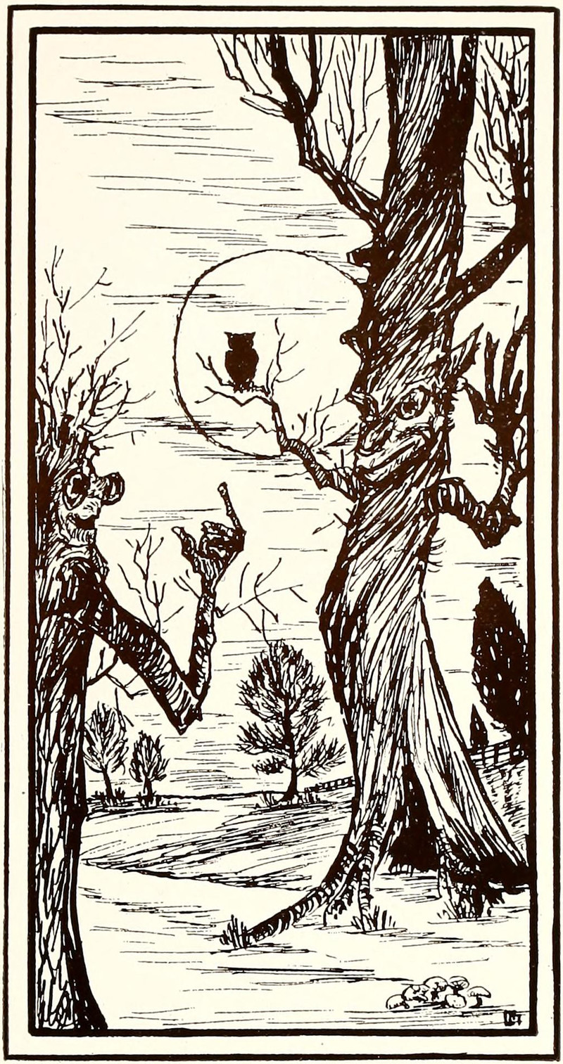 #vintage illustration #owl #tree spirit #vintage yearbook #yearbook #faces in things #illustration