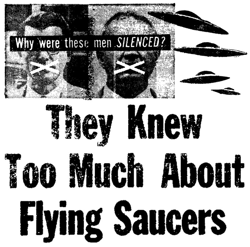 "They new too much about flying saucers."  From Flying Saucer News, 1958.
