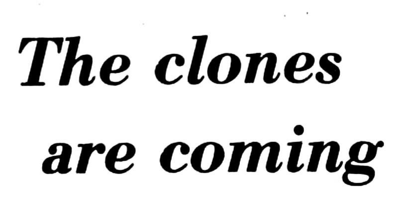 "The clones are coming."  From The Romulus Roman, 1977.