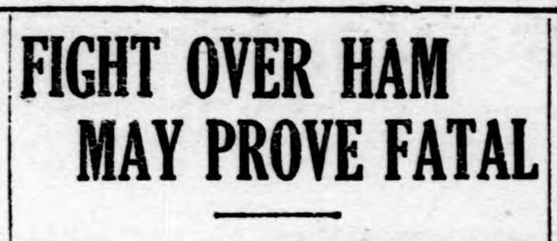 "Fight over ham may prove fatal."  From The Duluth Herald, 1910.