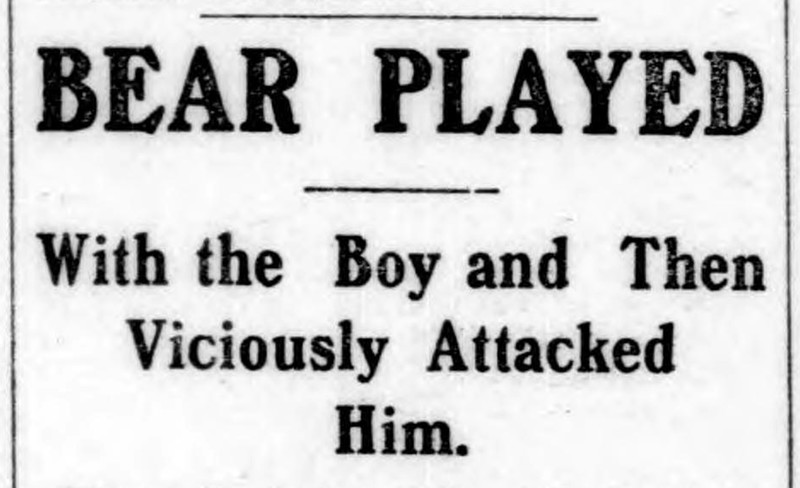"Bear played with the boy and then viciously attacked him."  From The Duluth Herald, 1901.