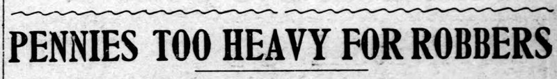 "Pennises too heavy for robbers."  From The Duluth Herald, 1904.