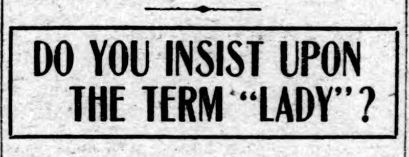 "Do you insist upon the term 'lady'?"  From The Duluth Herald, 1915.