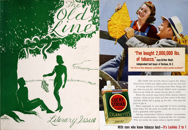 #vintage illustration #vintage ad #tobacco #garden of eden #adam and eve #vintage magazine #1940s #fig leaf #magazine #ad