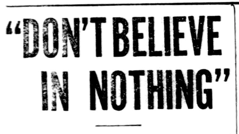 "Don't believe in nothing."  From the Duluth Herald, 1920.