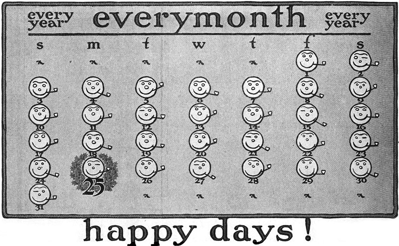 "Every Year, Every Month, Happy Days!":  a perpetual calendar from a 1916 issue of Collier's magazine.