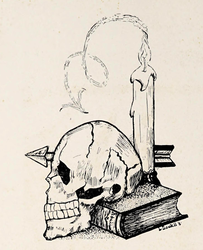#vintage illustration #skull #vintage yearbook #yearbook #candle #illustration #1910s