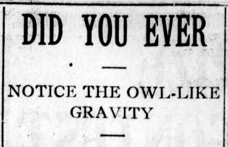 "Did you ever notice the owl-like gravity?"  From the Duluth Herald, 1896.