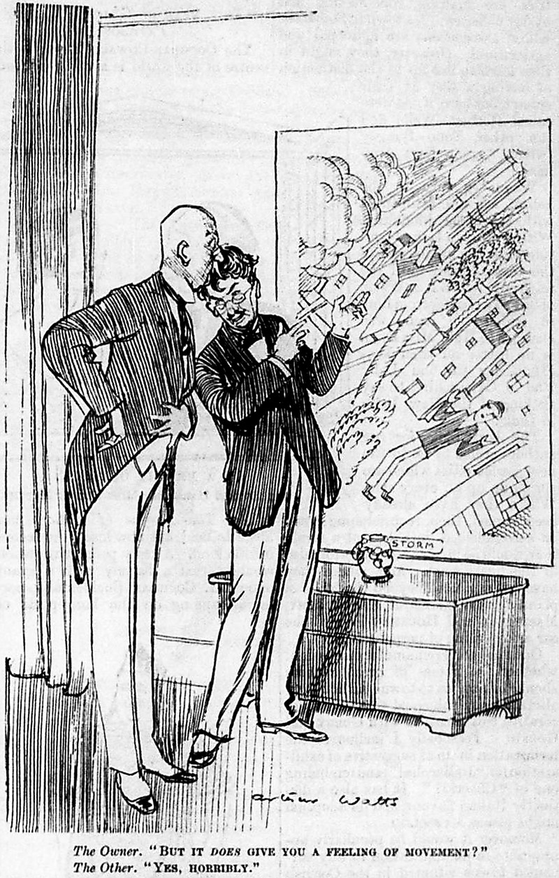 It does give a feeling of movement (horribly).  From Punch, 1928.