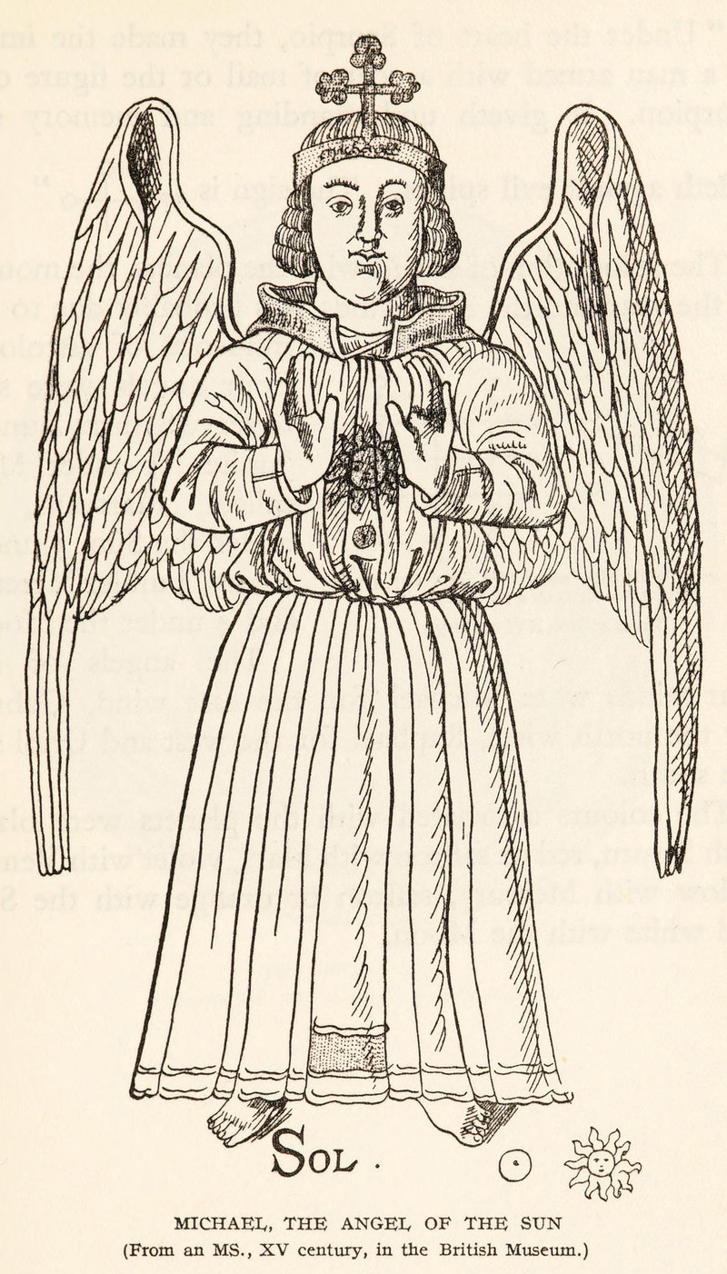 "Michael, the angel of the sun."  From The Mysteries and Secrets of Magic by C. J. S. Thompson, 1927.