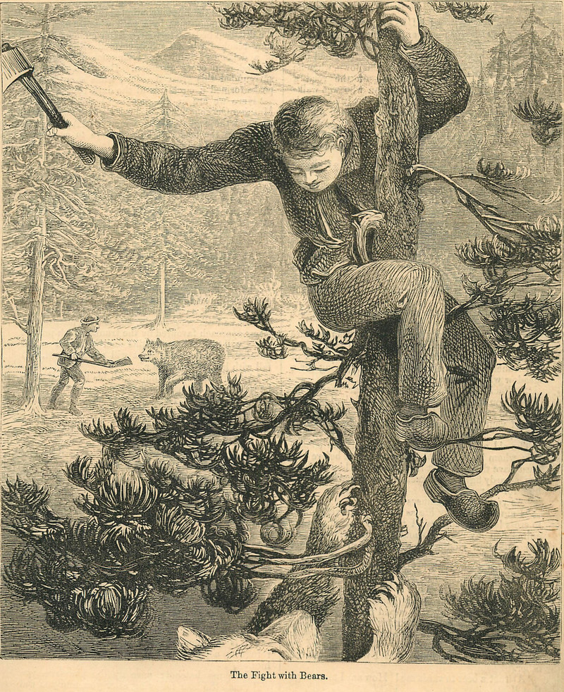 #vintage illustration #animal attack #bear #up a tree