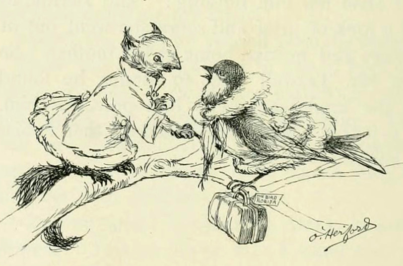 #vintage illustration #anthropomorphism #bird #squirrel