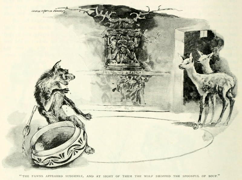 #vintage illustration #wolf #deer #fawn