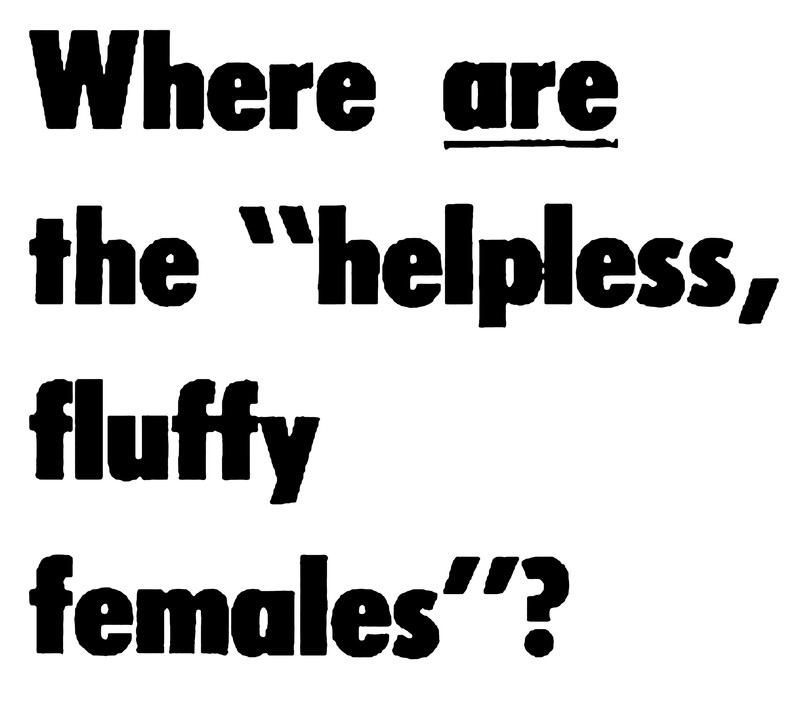 "Where are the 'helpless, fluflfy females?'"  From The Australian Women's Weekly, 1968.