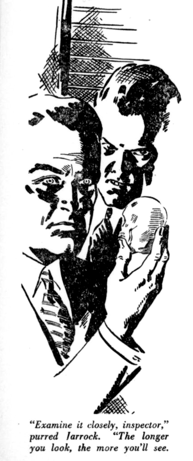 "Examine [the crystal skull] closely ... the longer you look, the more you'll see."  From The Shadow, 1944.