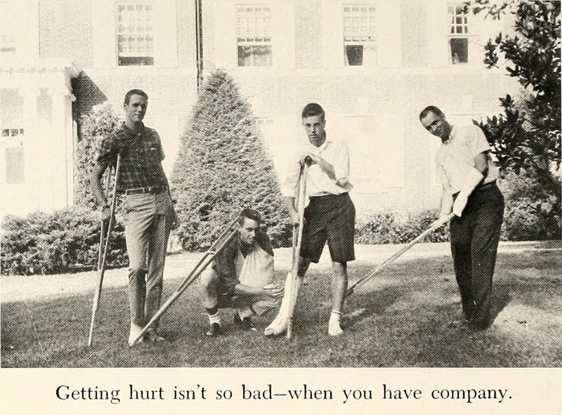 "Getting hurt isn't so bad — when you have company."  From Union College's 1964 yearbook.