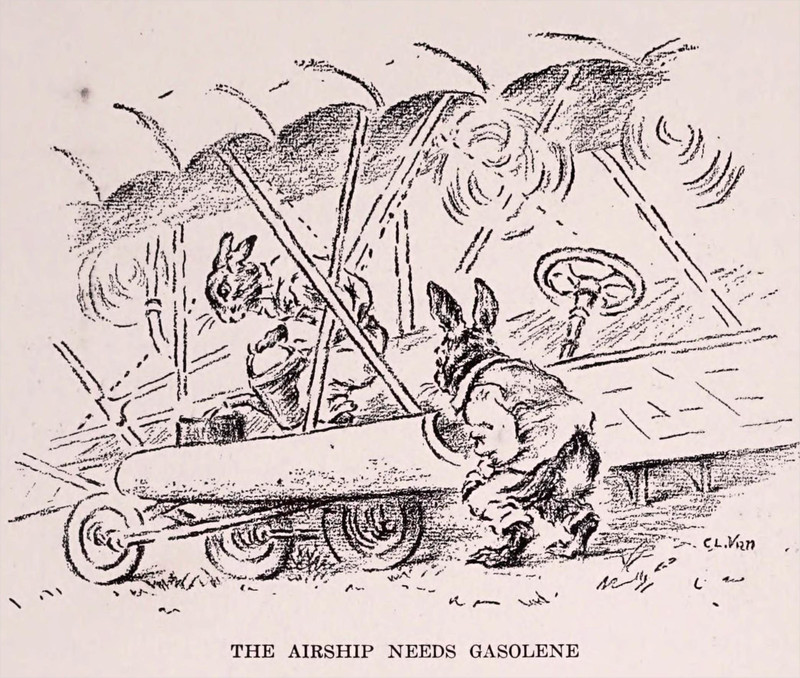 #vintage illustration #anthropomorphism #airship #flying machine #rabbit