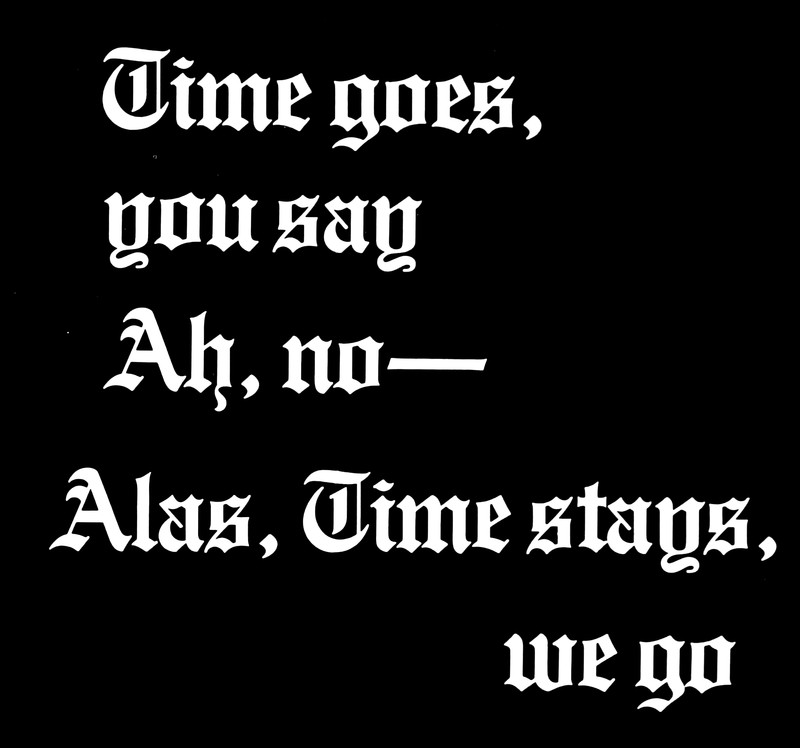 "Times goes, you say.  Ah, no— alas, Time stays, we go."  From Eastern Illinois University's 1980 yearbook.