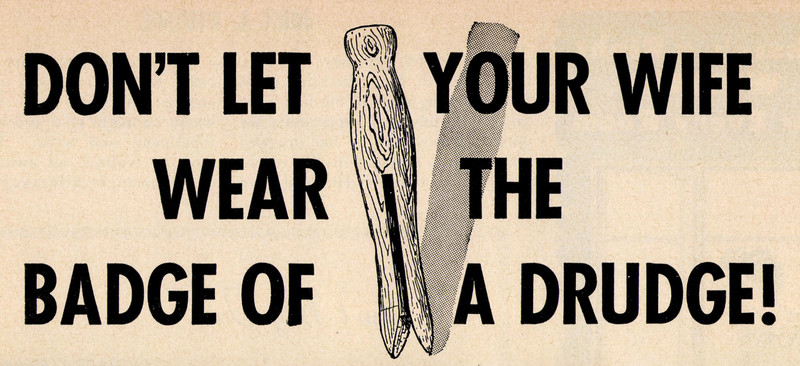 "Don't let your wife wear the badge of a drudge!"  From Improvement Era, 1952.