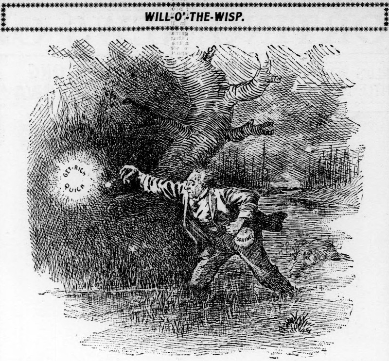 The "get rich quick" will-o'-the-wisp.  From The Duluth Herald, 1910.