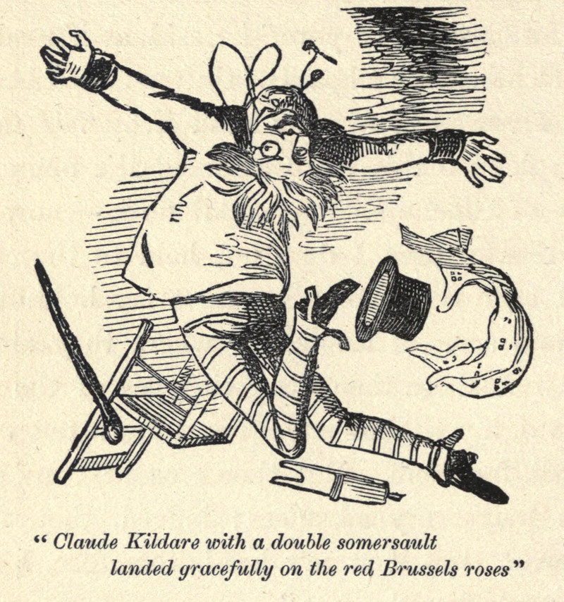 The picture looks better upside down, but it was printed this way.  From Abeniki Caldwell by Carolyn Wells, 1902.