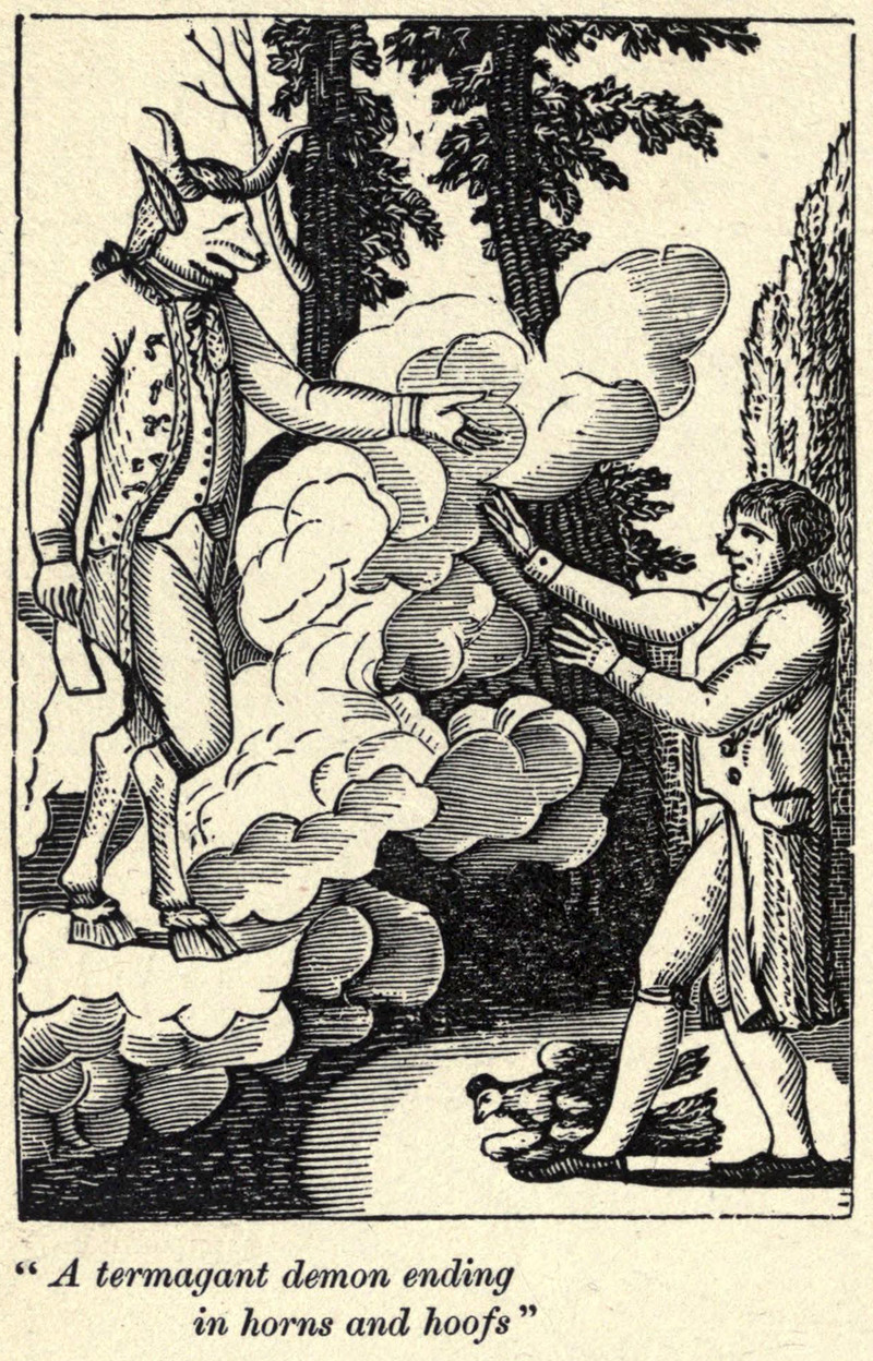 "A termagant demon ending in horns and hoofs." From Abeniki Caldwell by Carolyn Wells, 1902.