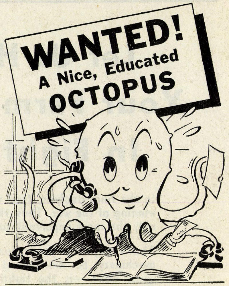 "Wanted!  A nice, educated octopus."  From Improvement Era, 1944.