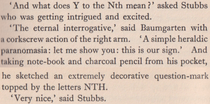 The programme, Stubbs noted, was to consist of two parts: no fewer than thirty emotional attitudes by Mrs. Darker herself, followed after an interval for refreshments by a reading by Miss Claribel Blockhouse from her own poem-states. At the end of all, Stubbs noted the ominous word "Discussion."