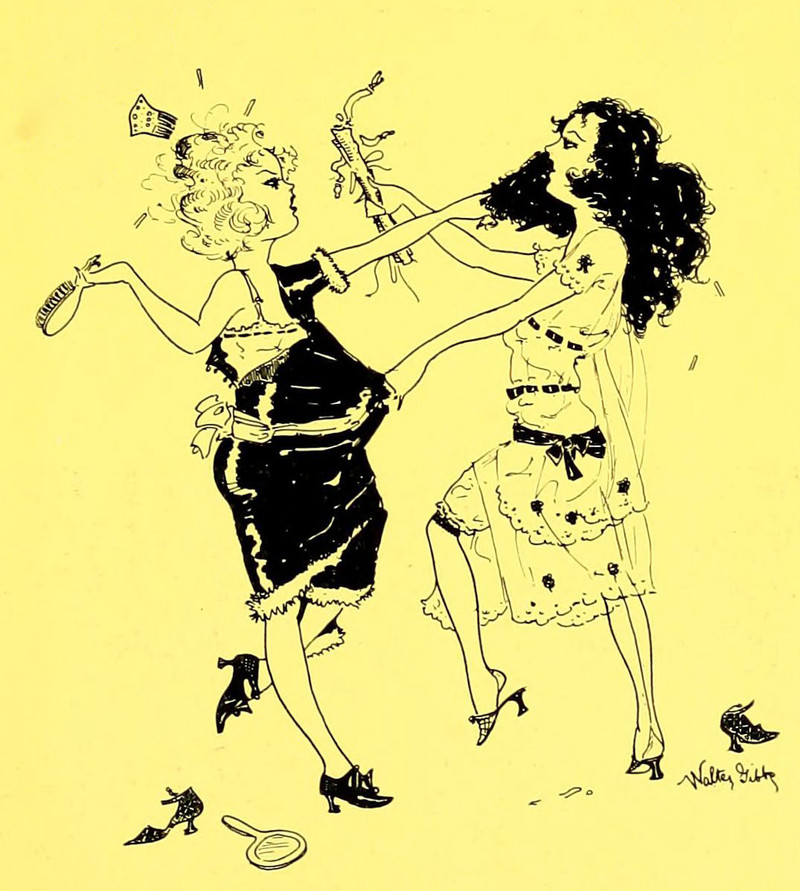 #vintage illustration #vintage yearbook #yearbook #1920s #sorority #women fighting