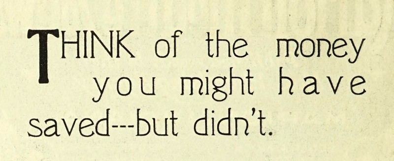 We'd actually rather not.  "Think of the money you might have saved---but didn't."  From Marion Theater News, 1925.