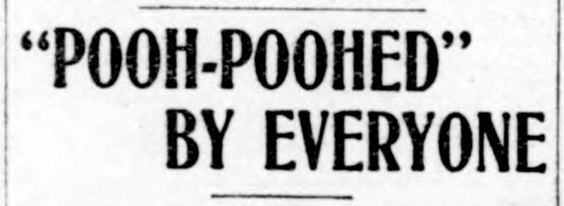 "Pooh-poohed by everyone."  From the Duluth Evening Herald, 1906.