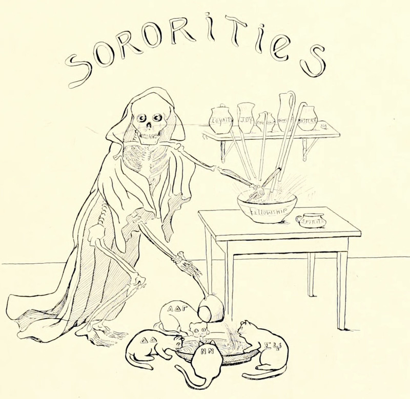 #vintage illustration #skeleton #punch bowl #vintage yearbook #yearbook #secret society #sorority