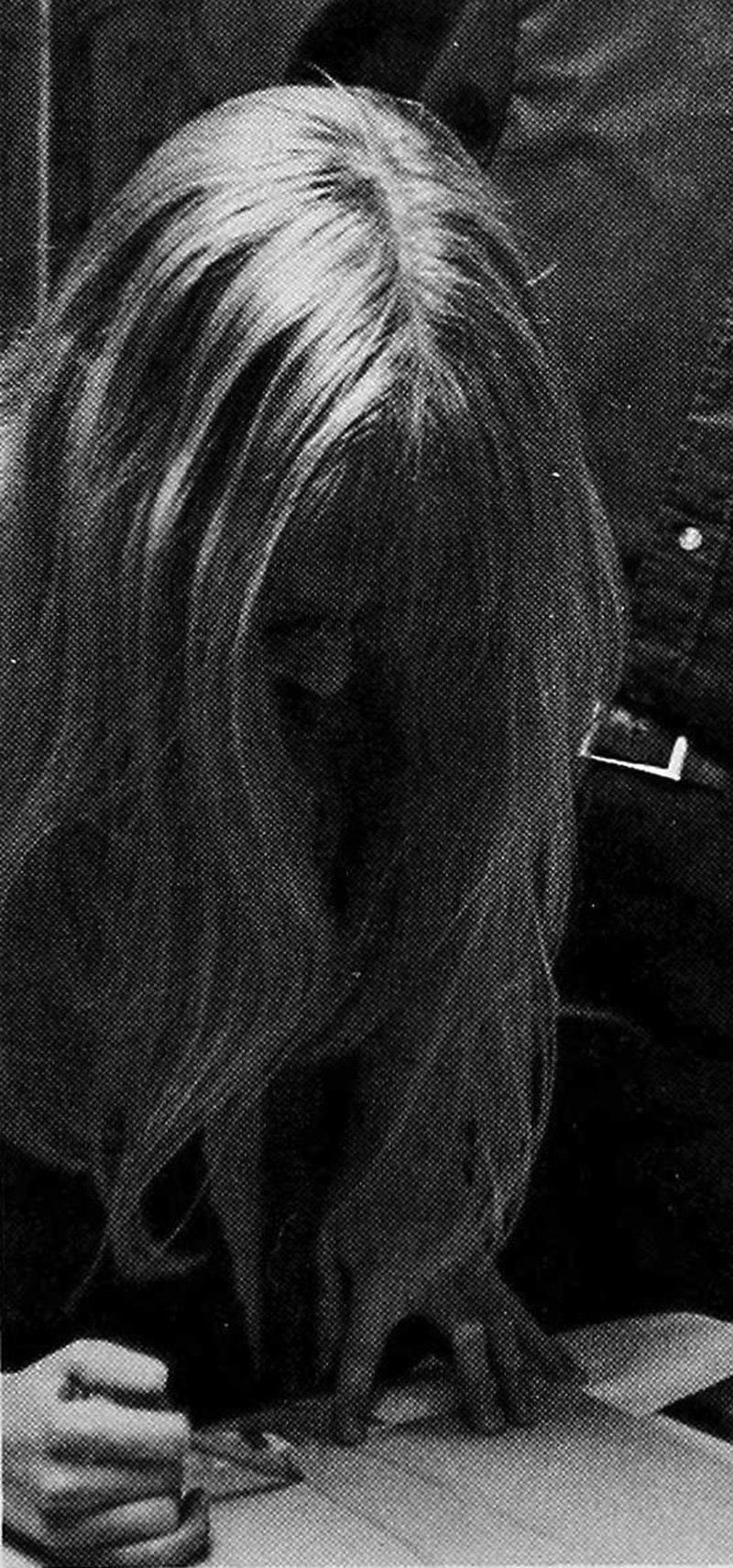 At first glance, we though this was Cousin Itt from the Addams Family.  From Illinois Wesleyan University's 1969 yearbook.