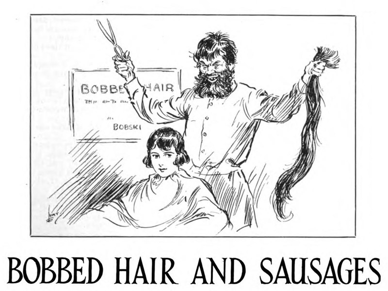 "Bobbed hair and sausages."  From The Strand Magazine, 1925.