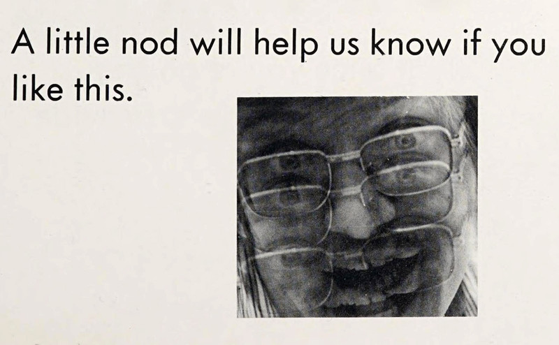 "A little nod will help us know if you like this."  From the University of Maine at Fort Kent's 1973 yearbook.