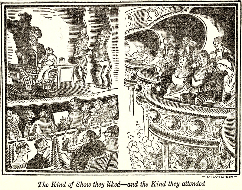 "The Kind of Show they liked—and the Kind they attended."  From Hand-Made Fables by George Ade and illustrated by John T. McCutcheon, 1920.