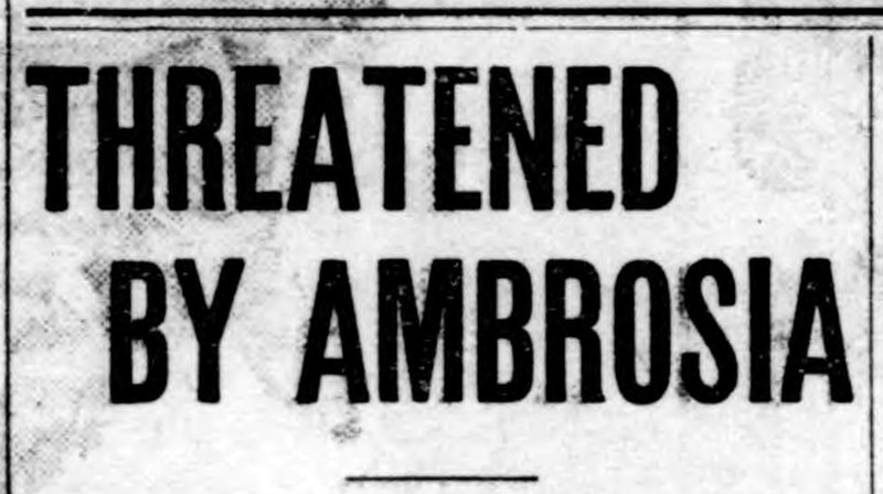 "Threatened by ambrosia."  From the Duluth Evening Herald, 1914.