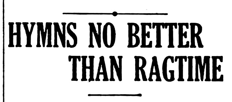 "Hymns no better than ragtime."  From the Duluth Evening Herald, 1910.