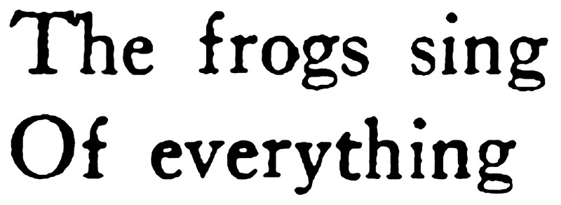 If you've ever wondered what frogs sing about, here's your answer.  "The frogs sing of everything."  From Where My Sight Goes by Yvor Winters, 1920.