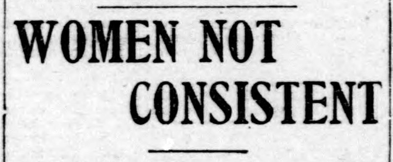 "Women not consistent."  From the Duluth Evening Herald, 1904.