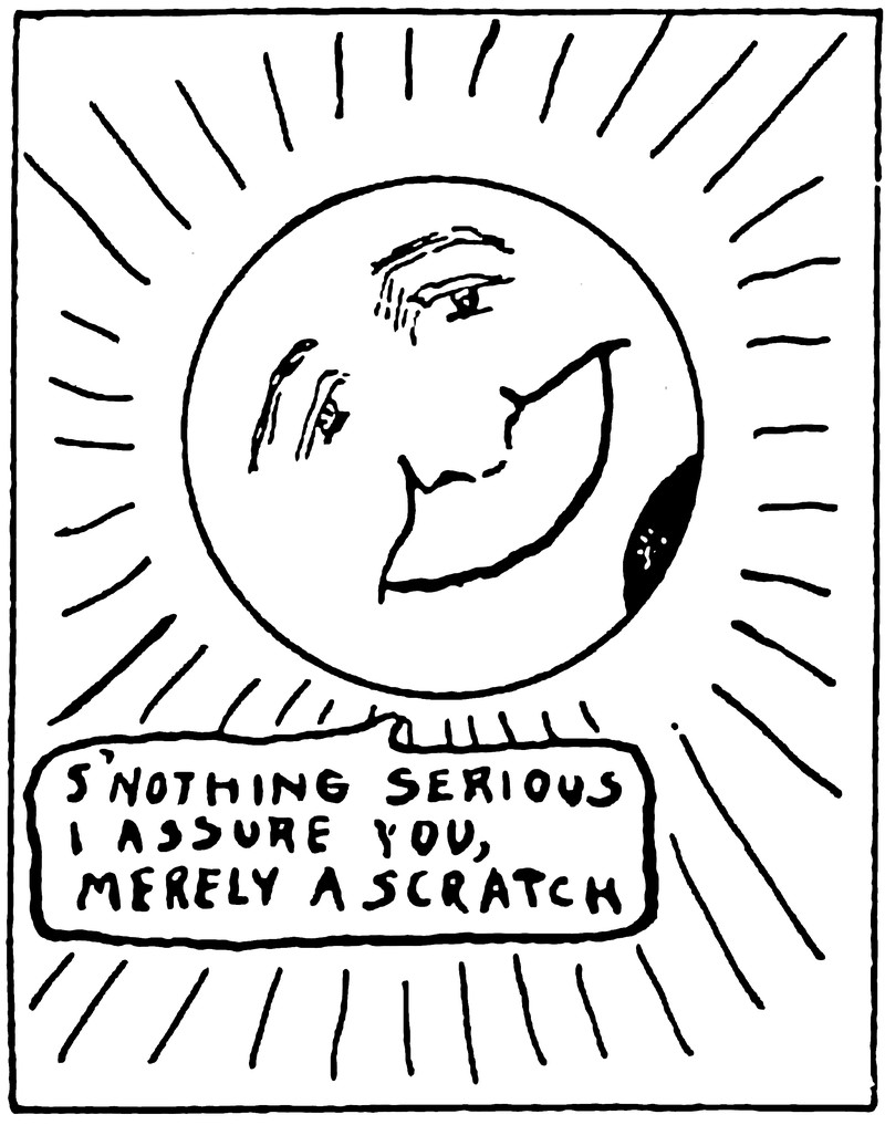 "S'nothing serious I assure you, merely a scratch."  From Elmhurst College's 1916 yearbook.