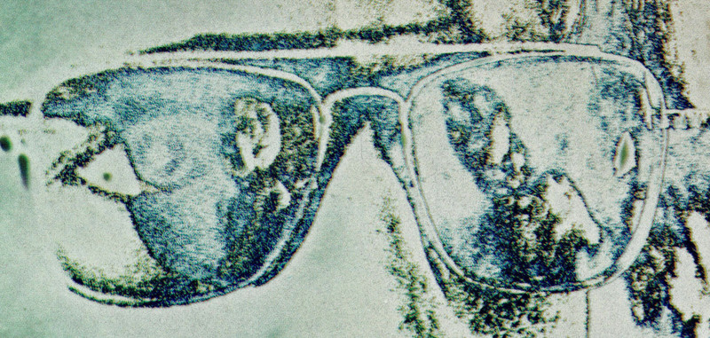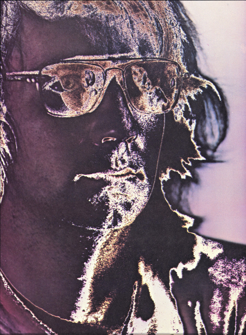 Inverting the image didn't help much, but we did spot two figures reflected in the eyeglasses, one human and one alien. From East Tennessee State University's 1972 yearbook.