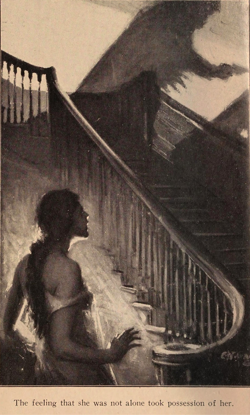 "The feeling that she was not alone took possession of her."  From The Whisper On the Stair by Lyon Mearson, 1924.