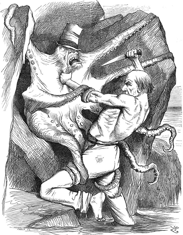 #vintage illustration #political cartoon #anthropomorphism #octopus #tentacles #illustration