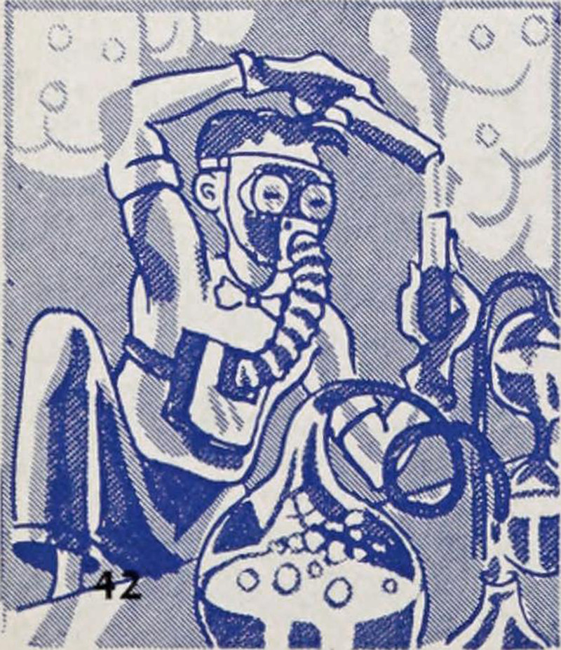#vintage illustration #mad scientist #vintage yearbook #yearbook #chemistry #1940s #illustration #gas mask