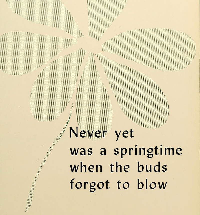 "Never yet was a springtime when the buds forgot to blow."  From Salve Regina College's 1955 yearbook.